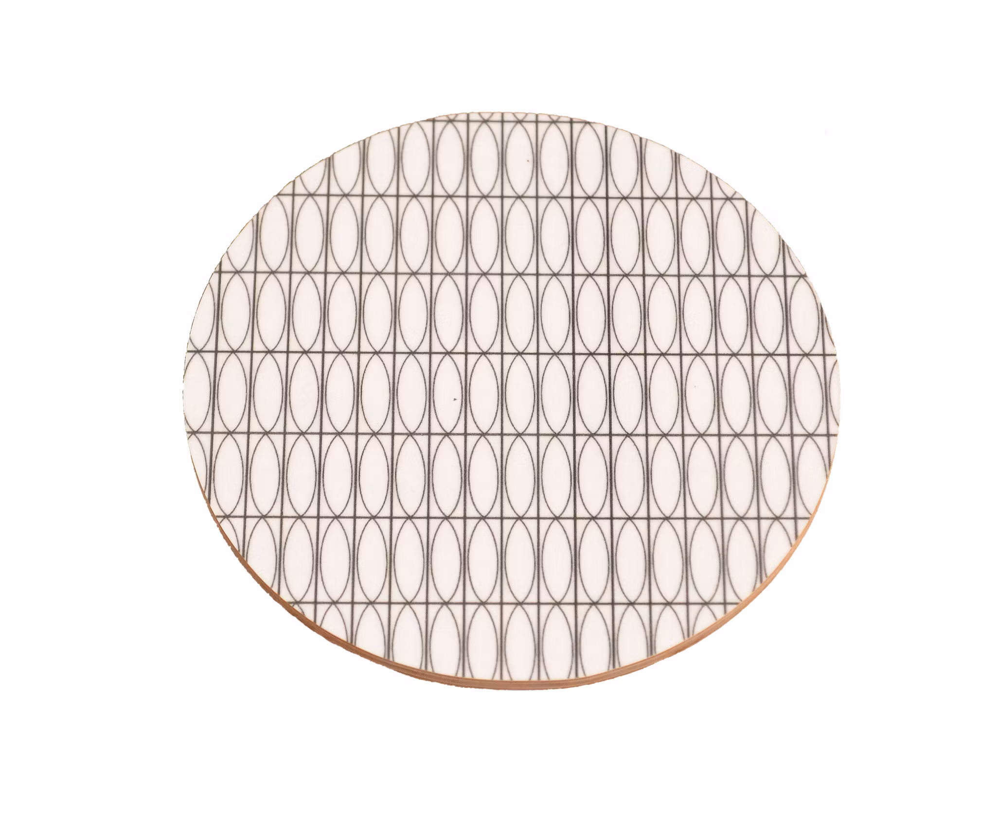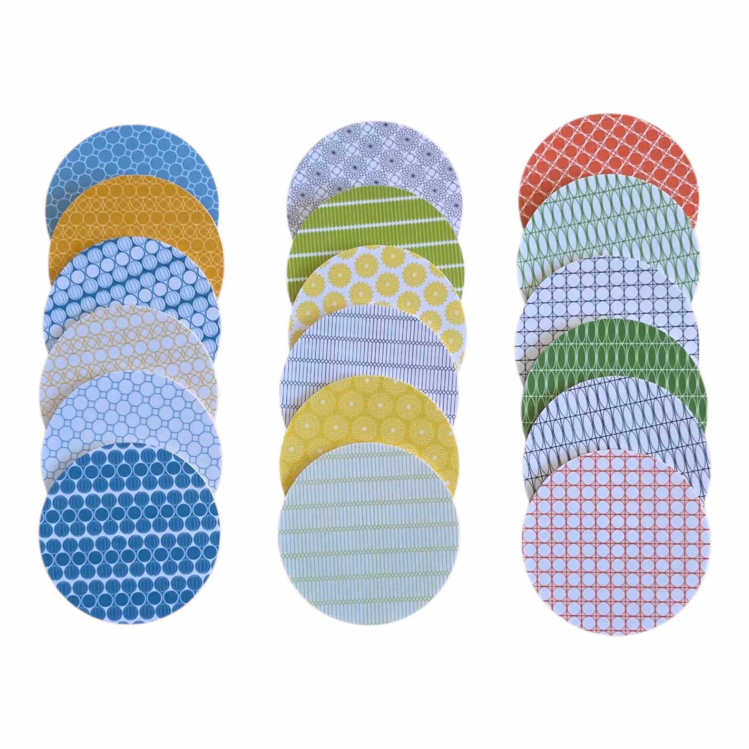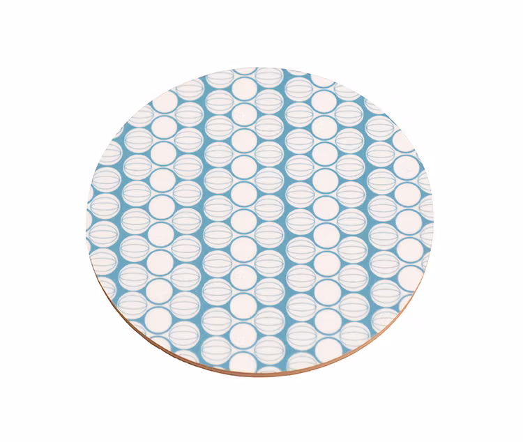 Runda glasunderlägg med unika mönster med retrokänsla, designade av mig Anneli Ohlsson, Från A till O. Kombinera gärna mina glasunderlägg på ditt eget sätt, efter färg, mönster eller som en galen palett av alla möjliga färger och mönster. På den eventuella festen kan det också vara ett sätt att hålla reda på vems glas som är vems. Glasunderläggen är hantverksmässigt tillverkad på Öland av björk från Norden. De är hållbara och tål värme. Baksidan är i björk.