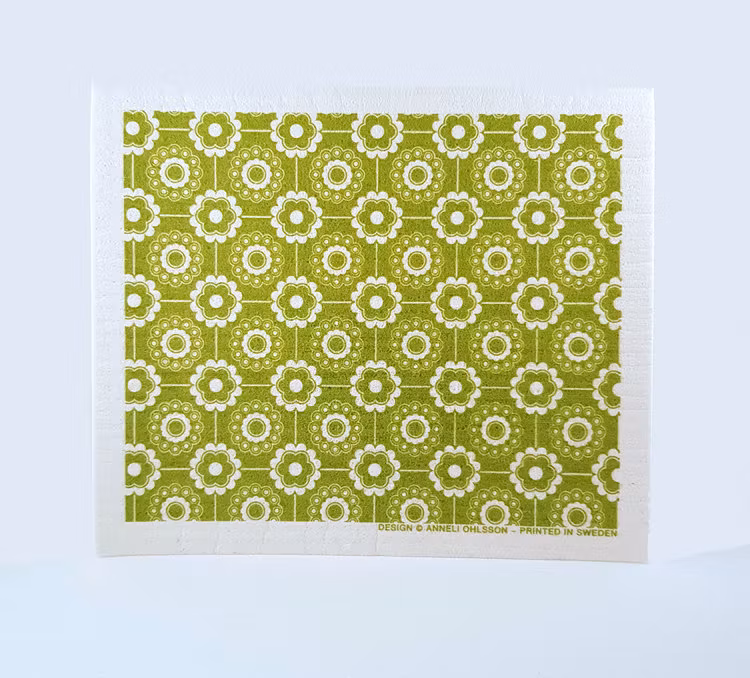 Den kan absorbera otroliga 15 gånger sin egen vikt och är tillverkad av naturlig cellulosa och bomullsfiber, vilket gör den till en komposterbar naturprodukt. Trasan tål kokning och är med tryck tvättäkta i 90 grader.